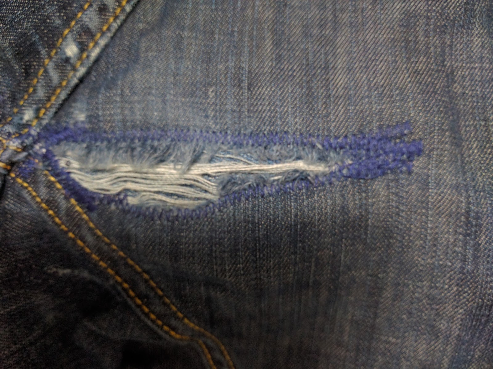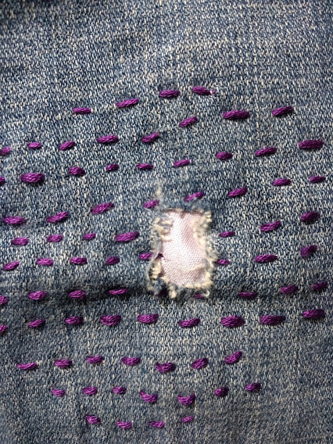 Repair of Wade’s jeans; this is my more typical jeans repair technique. |