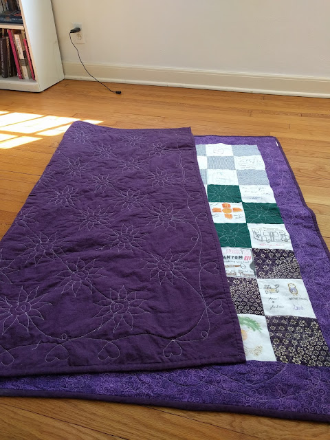 I will be the first to say that not all my flowers are perfect. This is definitely the kind of thing where the perfect can be the enemy of the good. Even though many of the flowers may look a little wonky if you look too closely, I am really happy with the overall effect. More importantly, almost no one will be looking that closely at the quilting when it gets used. In fact, we have been using the quilt a ton already! I definitely did not make it to just hang on a wall.
